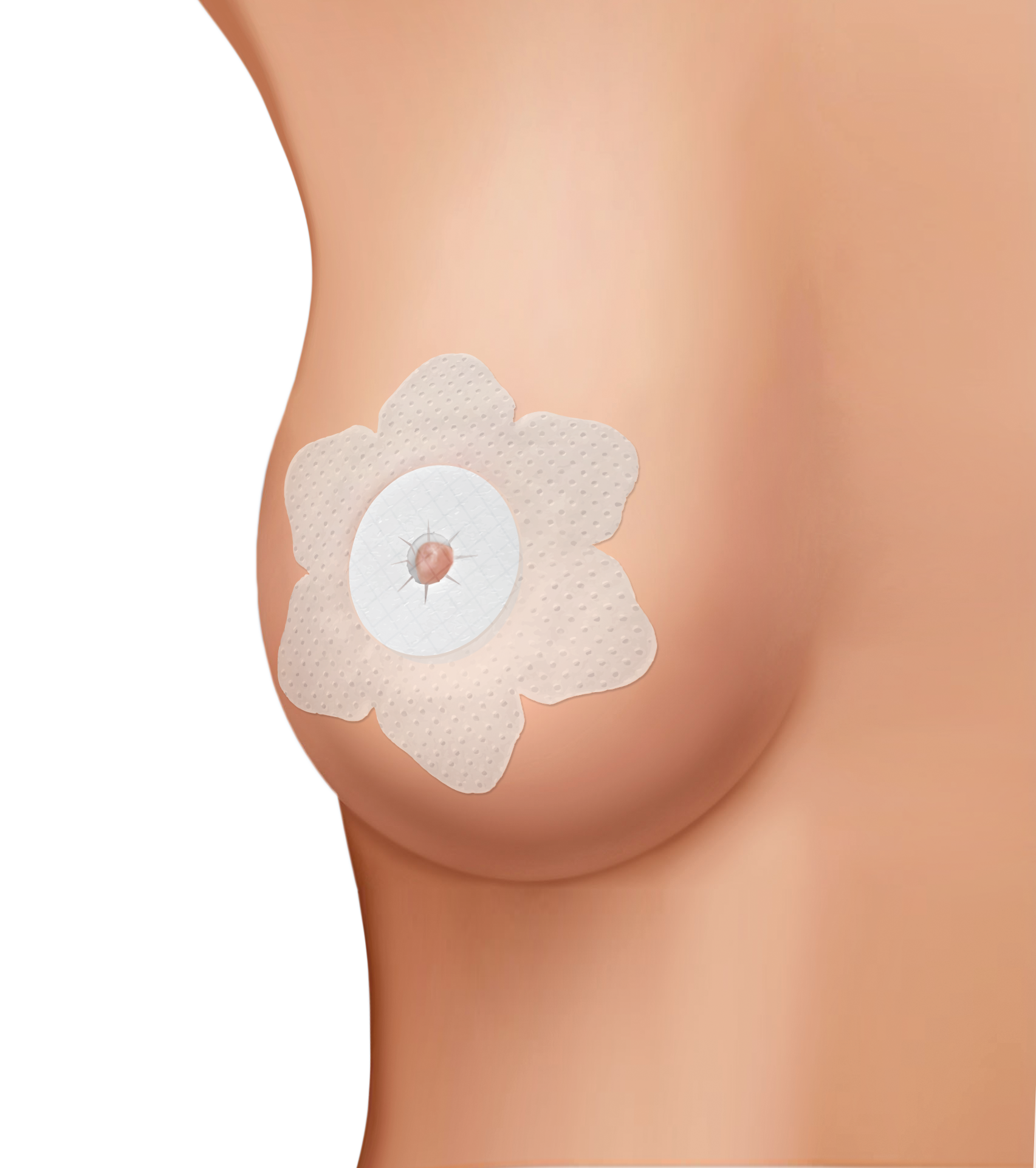 A PROTECTIVE AND SECURE BREAST DRESSING.