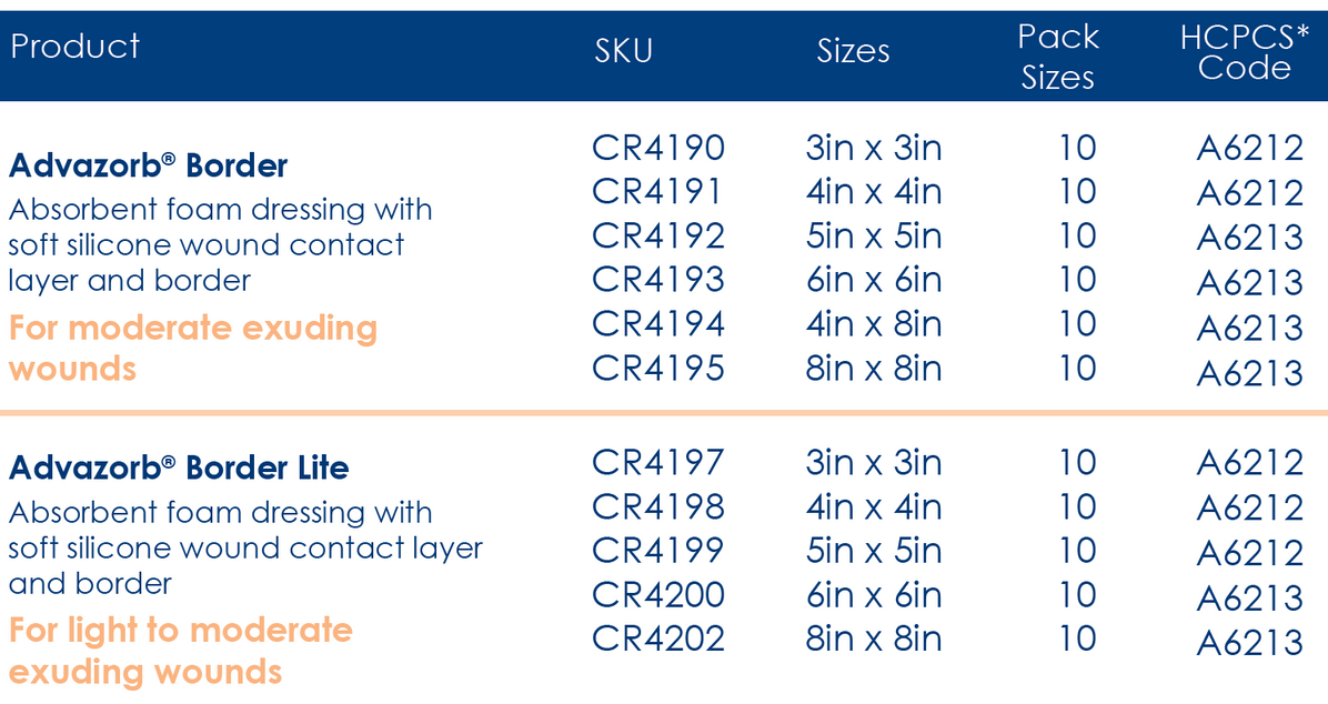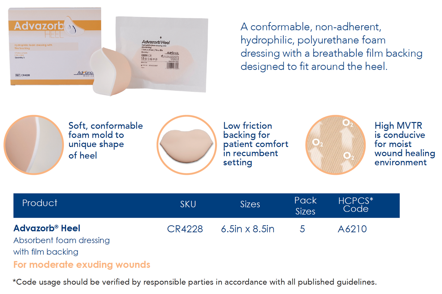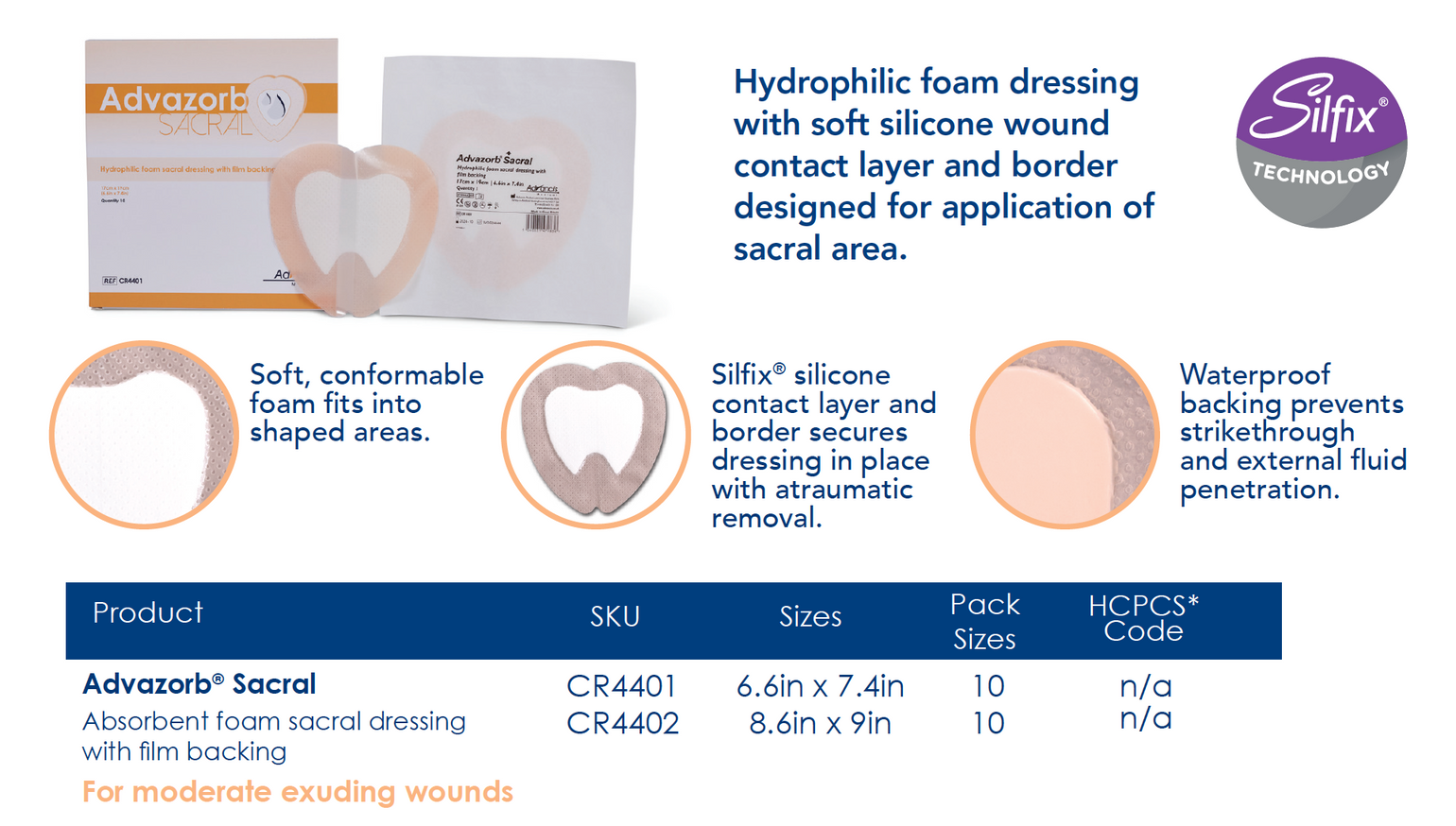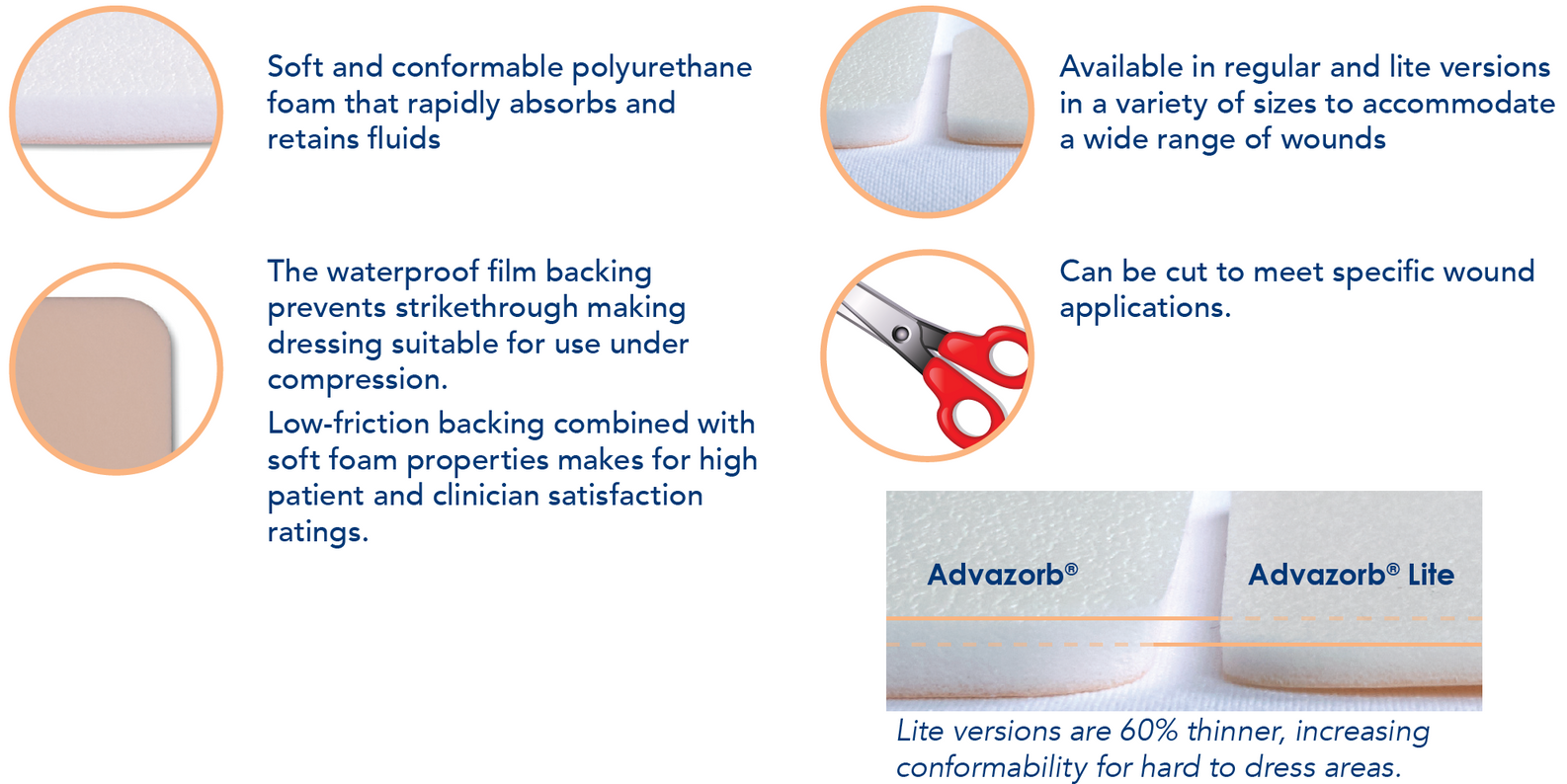 Advazorb® is a comprehensive range of patient-friendly, absorbent foam dressings featured in a non-adhesive or soft-silicone adhesive backing. The range is designed to overcome the complex challenges of managing exudate while protecting ‘at risk’ fragile skin.