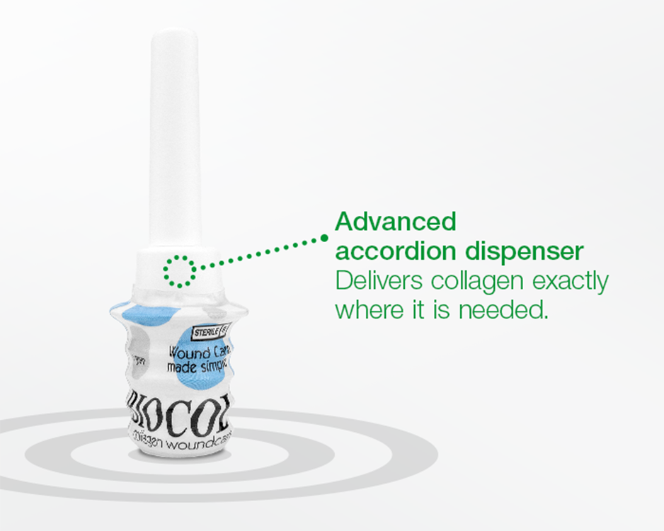 BIOCOL™ is a bovine collagen powder in an advanced accordion dispenser to deliver collagen precisely where you need it to promote a moist wound healing environment.