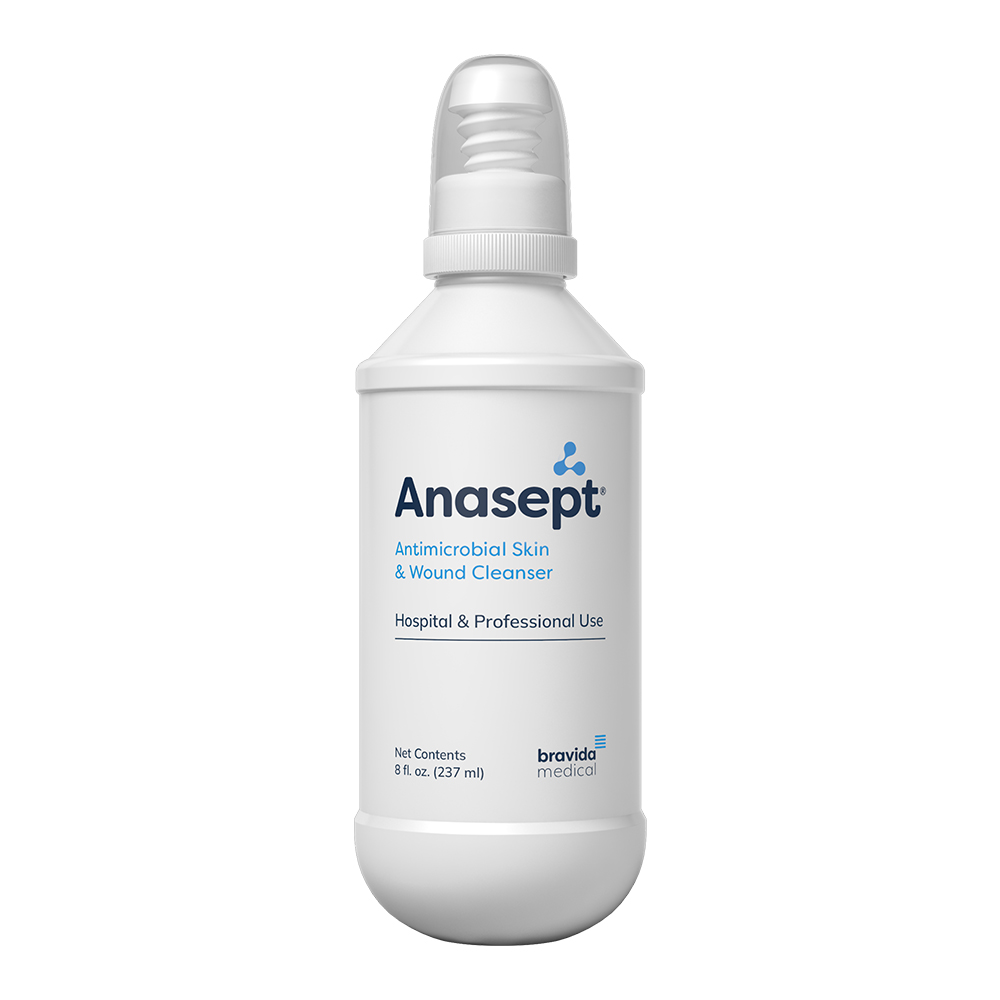 Anasept® Antimicrobial Skin and Wound Cleanser is intended for use under the supervision of a healthcare professional for the cleansing of foreign materials including micro-organisms from wounds such as stage I-IV pressure ulcers, diabetic foot ulcers, post surgical wounds, first and second degree burns, grafted and donor sites.