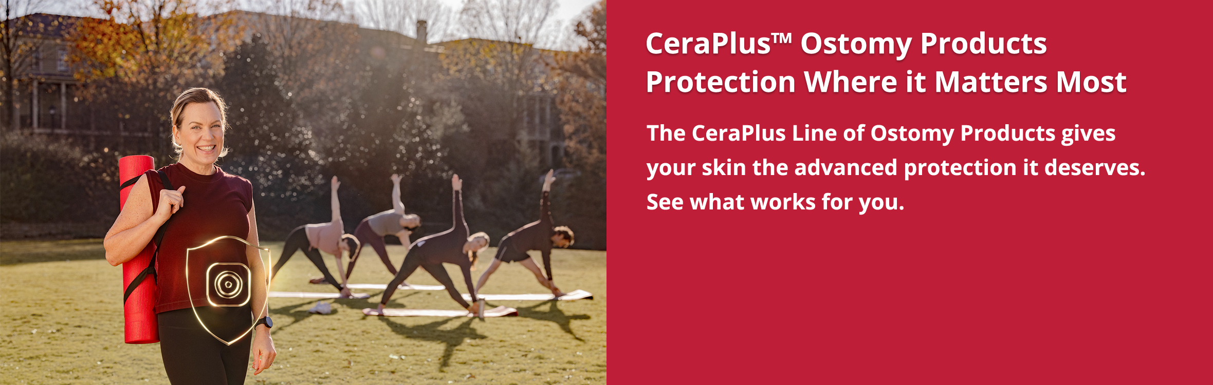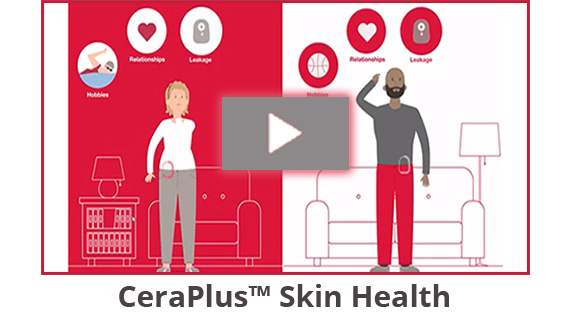 The innovative CeraPlus™ skin barrier is designed to maintain adhesive properties, and features a formulation infused with ceramide to help protect the skin’s natural moisture barrier. The condition of the skin greatly affects how well products can adhere, as well as the comfort and well-being of people living with a stoma. The CeraPlus™ skin barrier is available on one- and two-piece pouching systems.