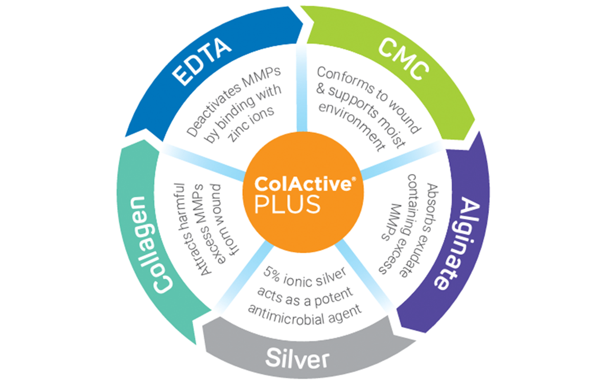 ColActive® PLUS Ag provides additional benefits of 5% ionic silver in the formulation, providing broad spectrum antimicrobial activity.