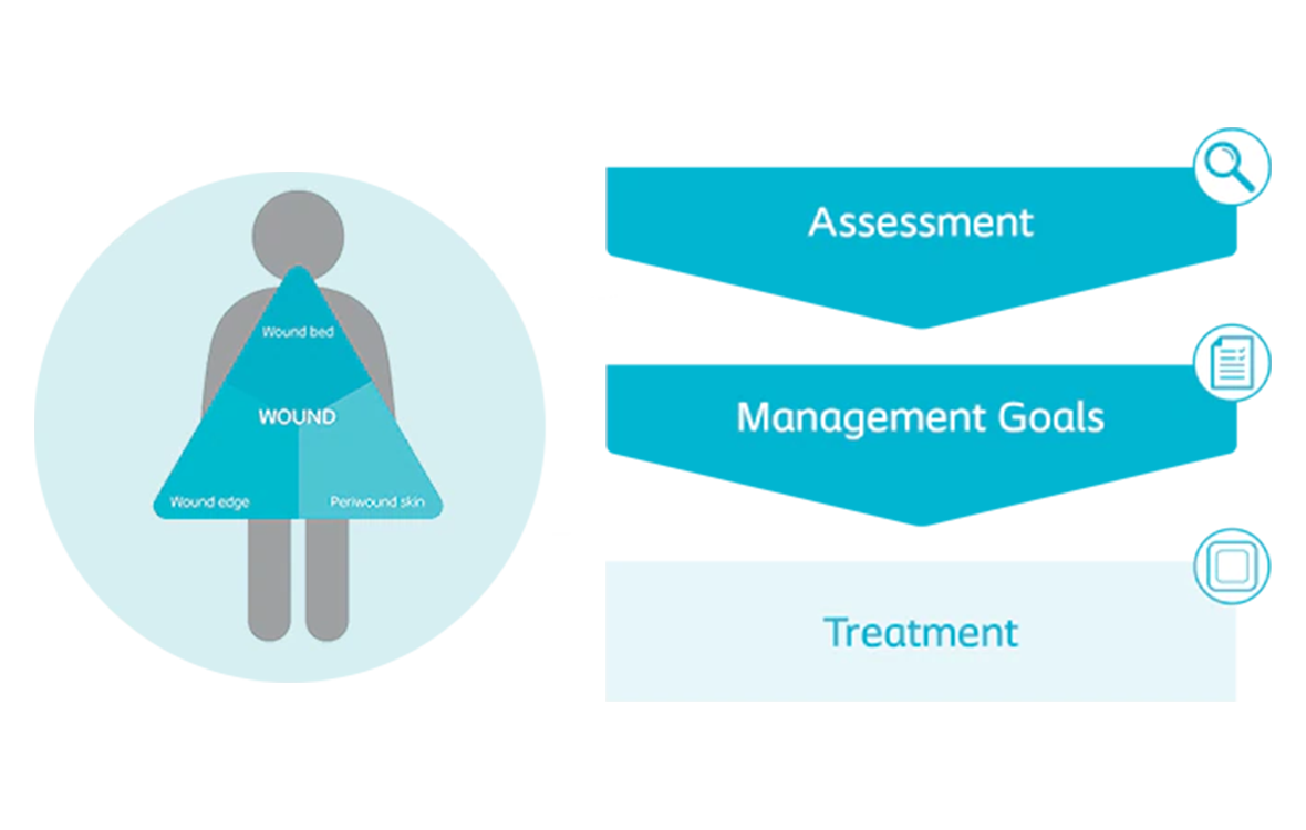 The Triangle of Wound Assessment is a holistic framework that allows practitioners to assess and manage all areas of the wound, including the periwound skin. It’s a simple and systematic approach that guides the user from complete wound assessment to setting management goals, and selecting the optimal treatment