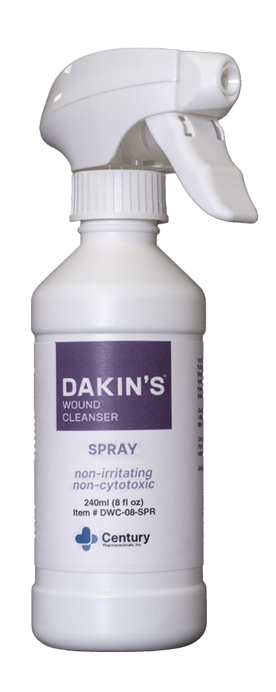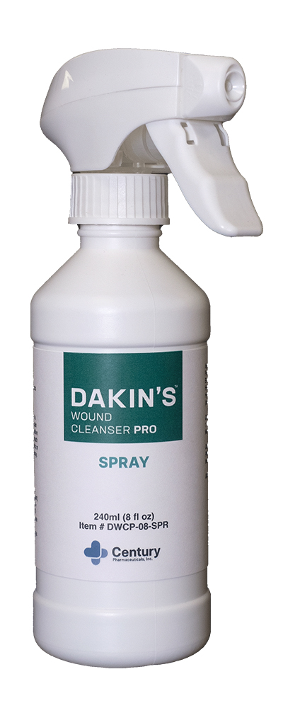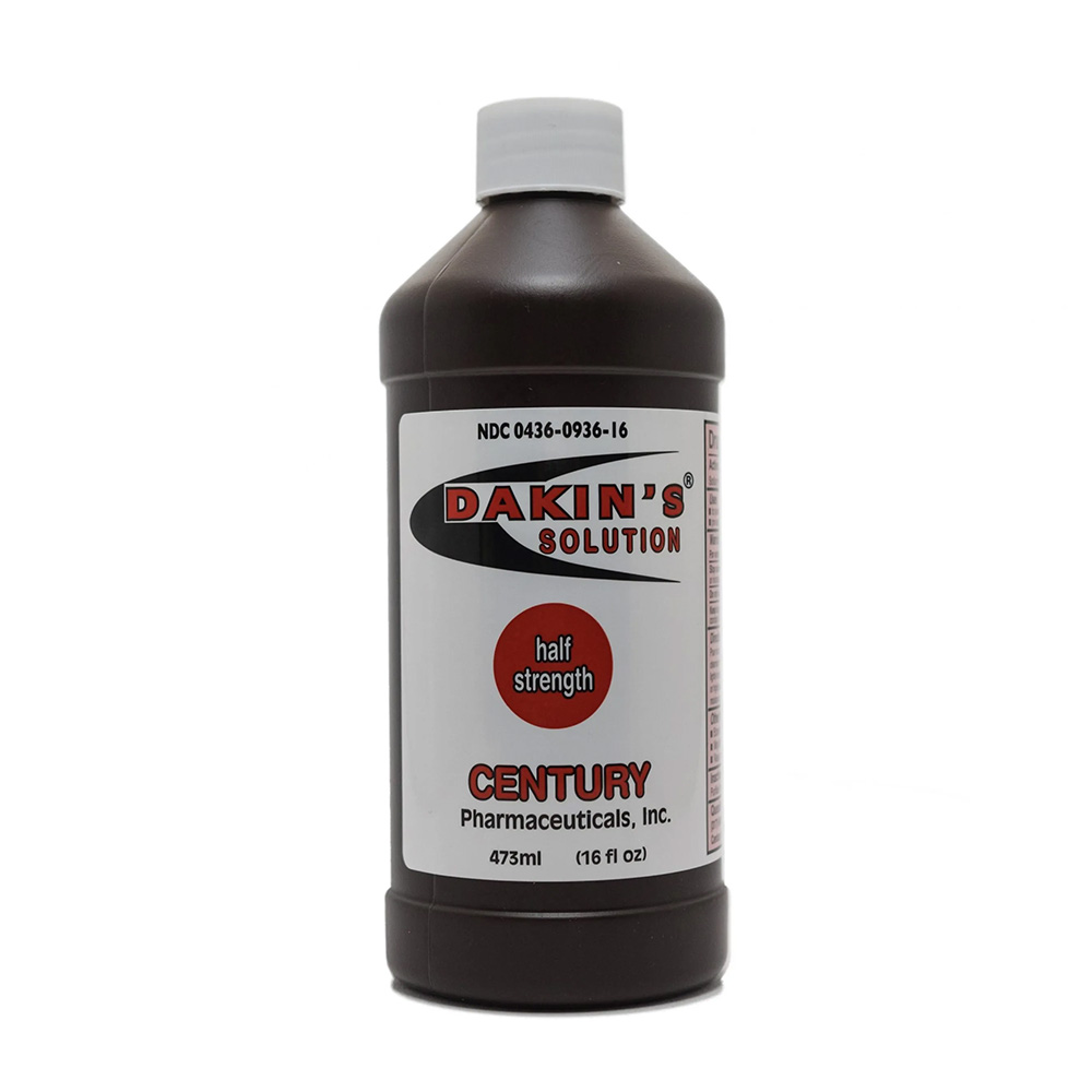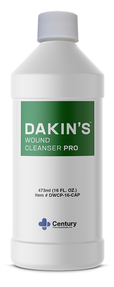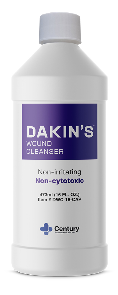 Century’s Dakin’s Solution® Full Strength (Sodium Hypochlorite 0.50%) is Century Pharmaceuticals’ highest strength of Sodium Hypochlorite available, featuring the original in-house formula that’s been used for years for a wide variety of wound care and treatment.
