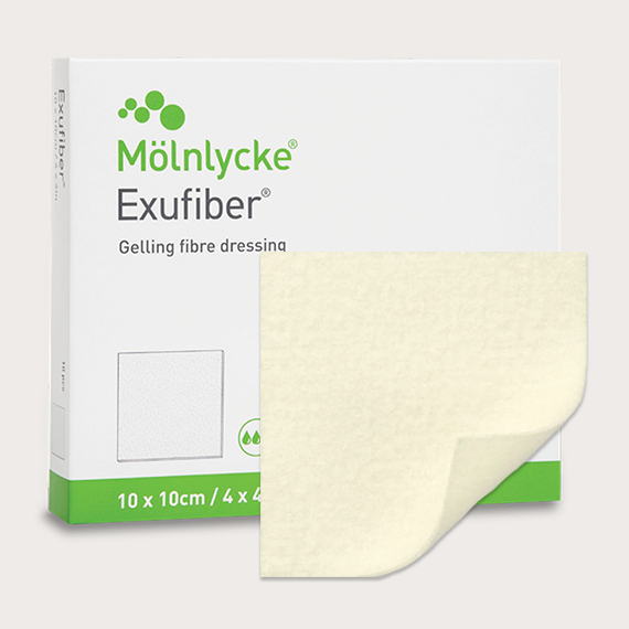Exufiber® is a sterile non-woven gelling fiber dressing made from highly absorbent polyvinyl alcohol fibers. It can be used to manage a wide range of exuding wounds including cavity wounds, leg and foot ulcers, pressure ulcers, and surgical wounds. Upon contact with wound exudate, Exufiber transforms into a gel that facilitates moist wound healing and ease of removal during dressing changes.²