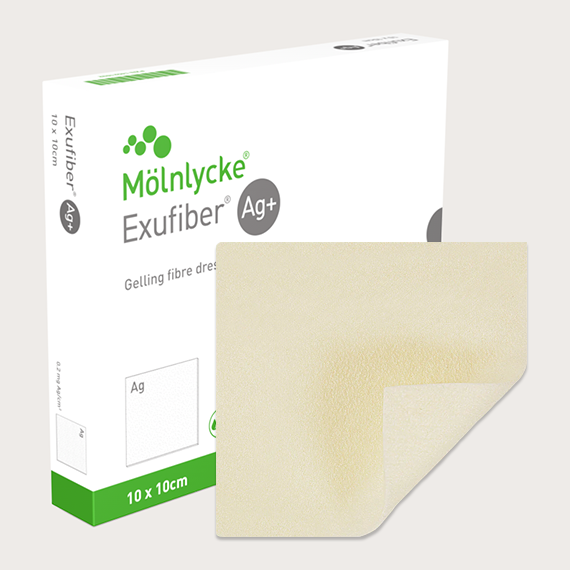 Exugiber Ag+ can be used in the management of medium to highly-exuding wounds. Exufiber Ag+ can be used in combination with Mepilex® Border with Safetac®
