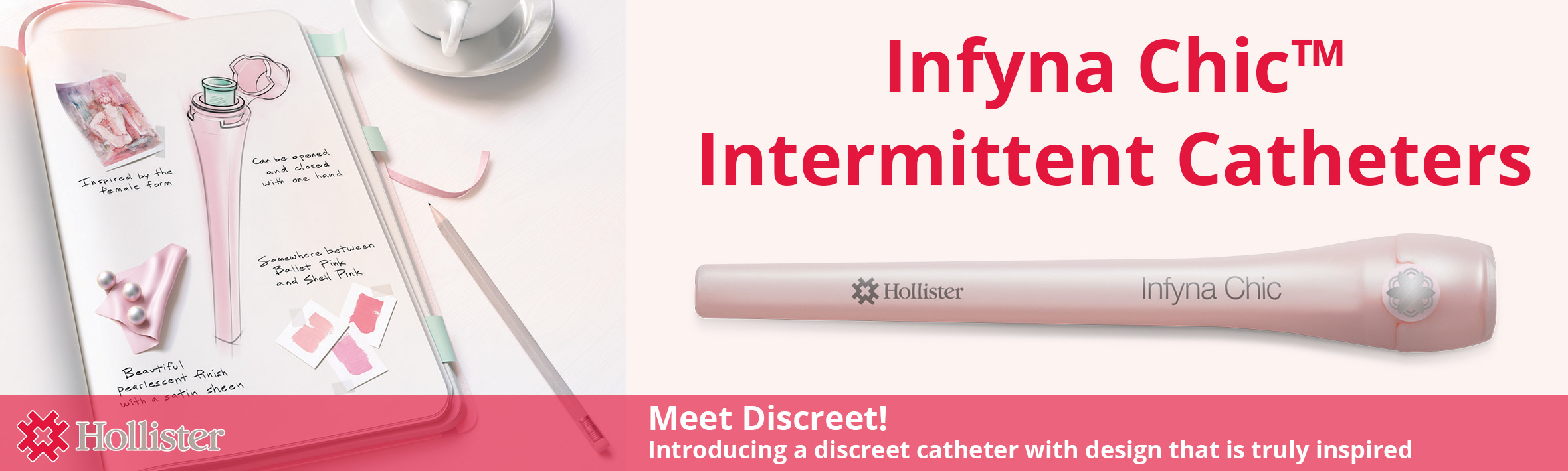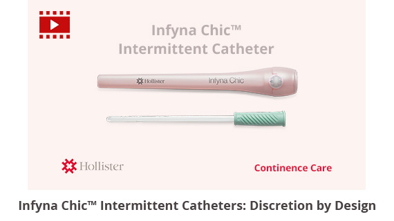 The Infyna Chic™ intermittent catheter offers a unique combination of color, design, and discretion to help blend in with a woman’s life. It was designed with input from clinicians to help provide a high level of discretion, and is both beautiful and easy to use.