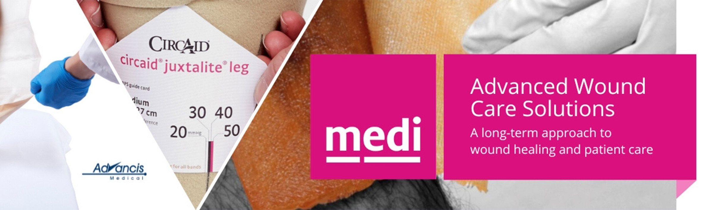 The medi organization has been delivering high-value, effective solutions in the wound-care sector for decades. Known for their comprehensive line of mediven compression stockings, and circaid inelastic compression wraps, medi recently partnered with UK based Advancis Medical to bring their highly advanced, 2nd generation wound care products to the U.S. market.