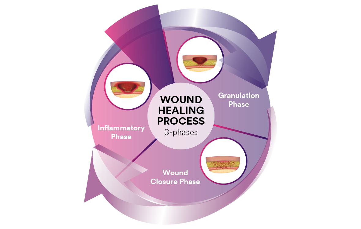 During the wound healing process, there are three main phases: inflammatory, granulation, and wound closure.