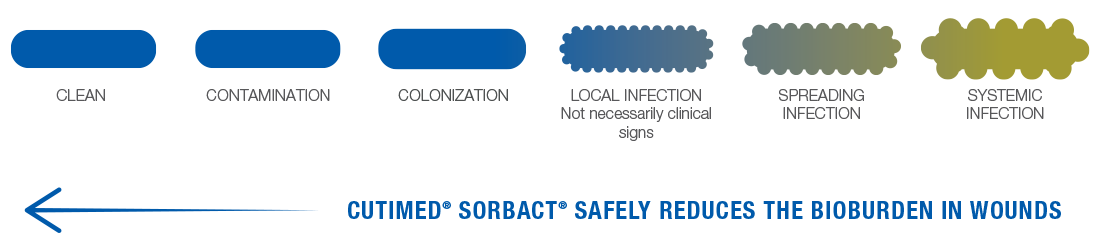 Cutimed® Sorbact® is versatile and effective in a variety of wound stages. It can be used to safely reduce bioburden in the short term, and also in the long-term treatment of already infected wounds.