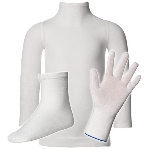 Tubifast® Garments with 2-Way stretch technology™ are designed for dressing retention and wet or dry wrapping. These ready-made garments are available in fullsleeved vests, tights, leggings, socks, and gloves for children six months and older. Gloves also comes in adult sizes.