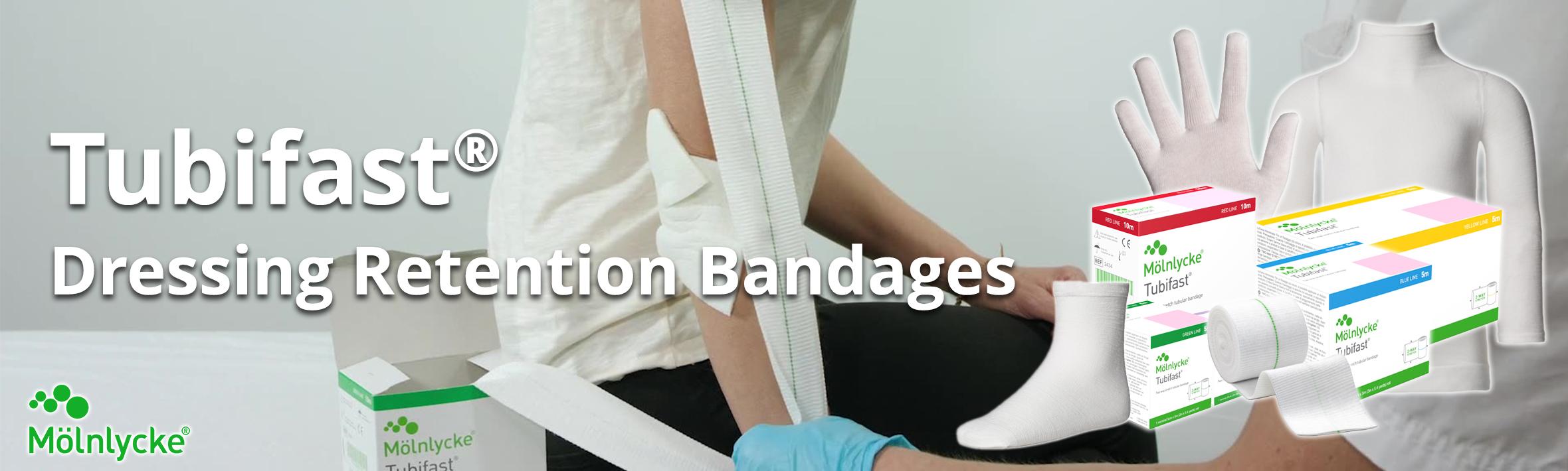 The range of garments also includes Tubifast Gloves with 2-way stretch technology, for wet or dry wrapping and dressing retention. These are available in four sizes, and are quick and easy to apply. Allows for freedom of movement.