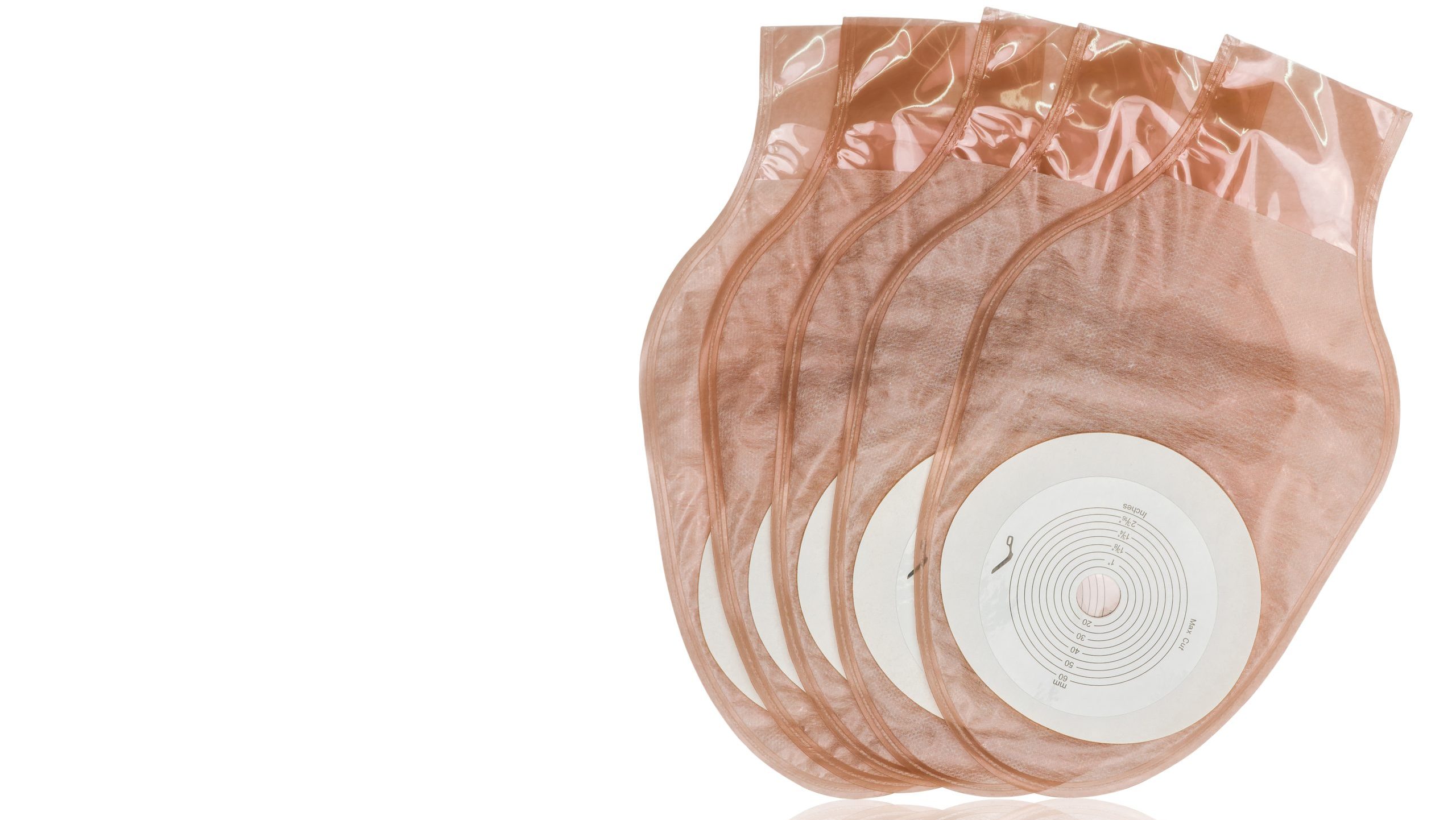 Ostomy systems contain two main components: the barrier and the pouch. The barrier is a disc with adhesive on one side that sticks to the peristomal area (the skin around the stoma). There is a hole in the center of the barrier where the stoma pokes through, and they come in a variety of shapes and sizes to accommodate different situations. Flat barriers are still the most widely used because they’re basic, they get the job done and they’re cost-effective.
