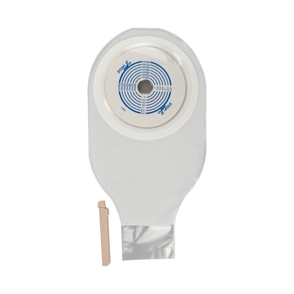 This one-piece ostomy pouch has two tail closures and comes with the brand’s Durahesive barrier. Durahesive skin barriers are designed for people whose stoma output is mostly liquid. And unlike other skin barriers that can breakdown around liquid output, the skin barrier adhesive is designed to swell up, or “Turtleneck” as ConvaTec describes it, to better protect the stoma and peristomal skin. This effect helps create a more secure seal without harming the skin.