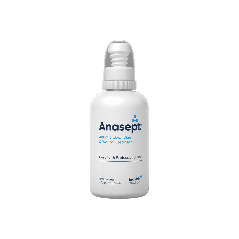 Anasept® Antimicrobial Skin and Wound Cleanser is intended for use under the supervision of a healthcare professional for cleansing of foreign materials including micro-organisms from wounds such as stage I-IV pressure ulcers, diabetic foot ulcers, post-surgical wounds, first and second degree burns, grafted and donor sites.