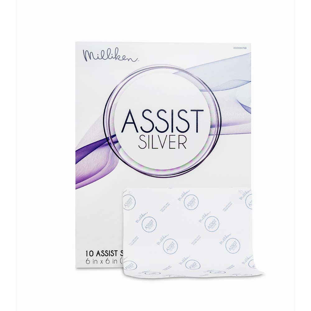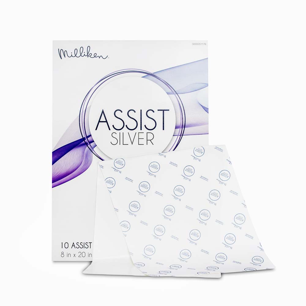Every Milliken ASSIST Silver dressing utilizes Active Fluid Management® Technology created by Milliken Healthcare Products, LLC. This three-part design combines two layers of high-performance fabric using a micro-knit process, creating a moisture transfer mechanism that pulls away and traps excess exudate.