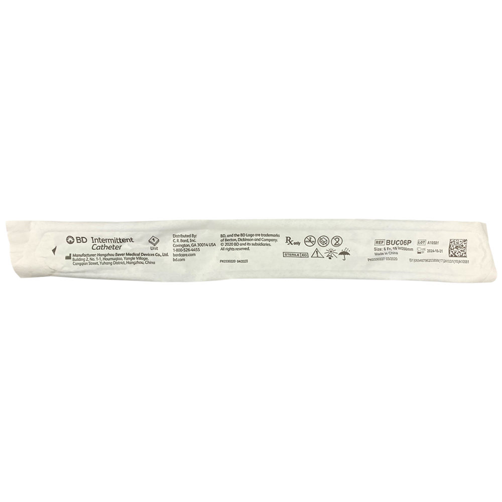 BD 10″ Pediatric Intermittent Catheter for children offers convenience and comfort in one easy-to-open peel-strip package. Each flexible vinyl pediatric catheter is 10 inches long and features a straight insertion tip with two heat-polished eyelets. These eyelets help ease drainage while also making insertion more comfortable. The BD Pediatric Catheter also features color-coded funnels, which you can use to easily identify the child’s catheter French size.