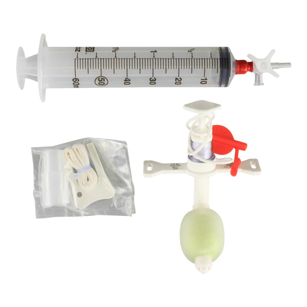 The Fome-Cuf tracheostomy tube is intended to maximize patient comfort by incorporating state of the art silicone technology with an innovative cuff expansion system. The Fome-Cuf tracheostomy system allows direct cuff volume measurement, the key indicator of tracheal wall changes. The Cuff Maintenance Device (CMD) cuff inflation controller, a 60 mL syringe with an attached 3-way stopcock, directly measures cuff volume and simplifies routine cuff maintenance. Packaged individually sterile with obturator, SidePort AutoControl airway connector, CMD cuff inflation controller, twill trach tie, and 15 mm disconnect wedge.