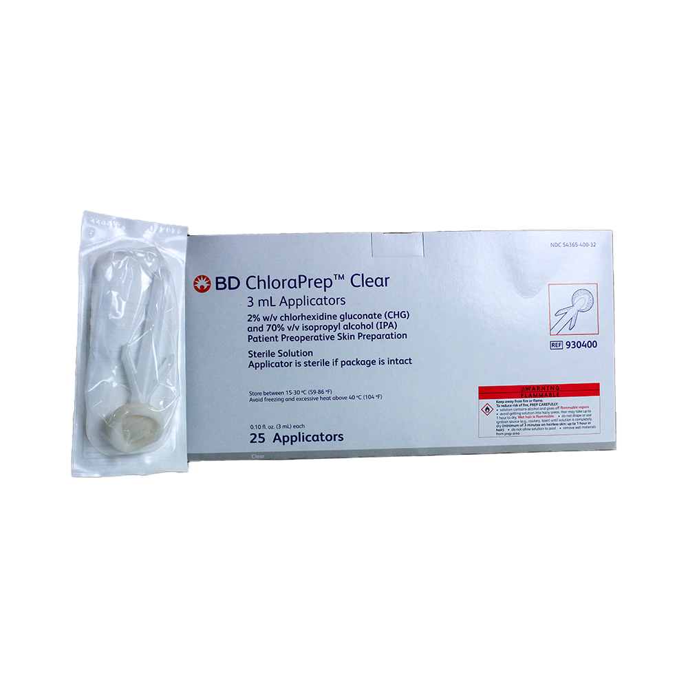 Supported by over 50 clinical studies, ChloraPrep™ applicators are formulated with 2% w/v chlorhexidine gluconate (CHG) and 70% v/v isopropyl alcohol (IPA). Designed for professional and hospital use, ChloraPrep™ reduces bacteria during skin preparation and helps reduce the incidence of skin infection.