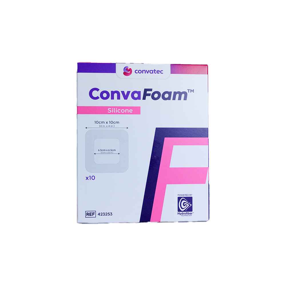 ConvaFoam Adhesive Silicone – the simple dressing choice for skin protection and wound management. For use on a spectrum of wound types at any stage of the wound journey, these dressings are made with AQUACEL Hydrofiber Technology to gel on contact and maintain a moist wound environment. ConvaFoam can be cut to aid application in difficult to dress areas and features patterned film for exudate monitoring with the dressing.