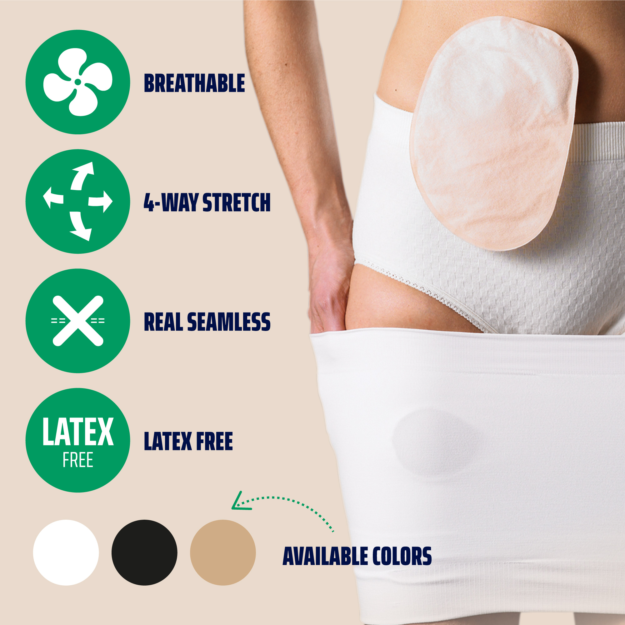 Developed with a keen appreciation for discretion, StomaSafe Plus excels at both fixating and concealing the ostomy pouch. Its high-quality construction ensures a soft, skin-friendly experience, boasting a seamless design for optimal comfort.