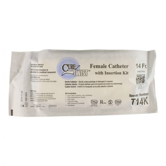 The Cure Twist is available with an Insertion Kit. The insertion kit includes a nonstaining BZK wipe, ambidextrous gloves, an underpad, and collection bag with a universal connector.