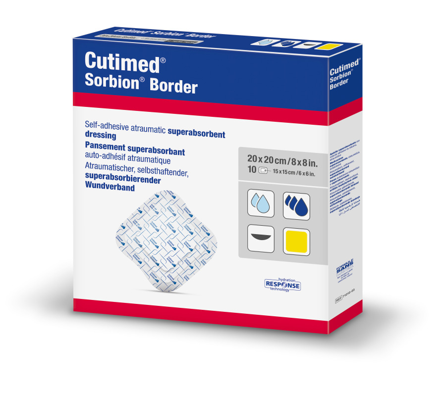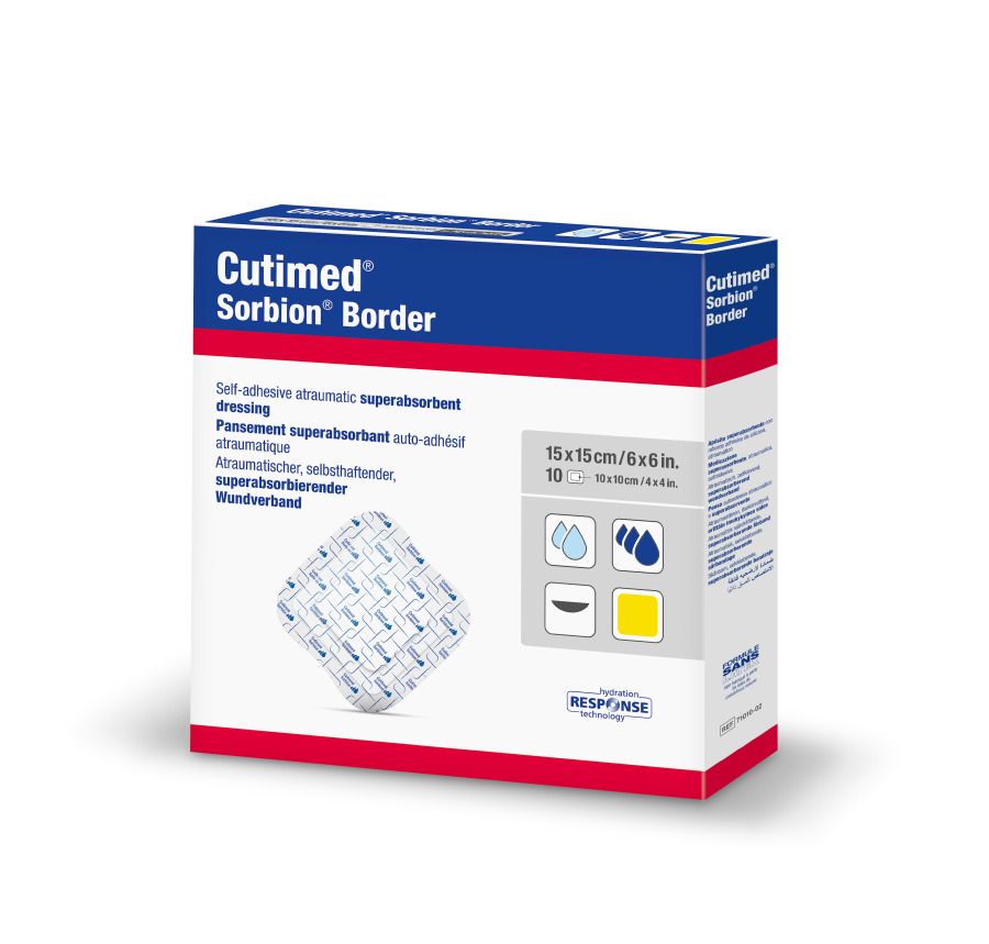 Cutimed Sorbion Border is a high performance superabsorber with a new high tack silicone border for atraumatic application.