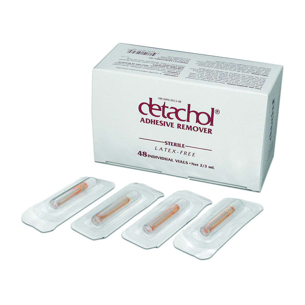 Apply: By gently squeezing the vial, apply Detachol to the corner of the tape or dressing. Once the corner is saturated, carefully lift the tape or dressing. Continue squeezing the vial, while gently lifting the tape or dressing at the same time. Continue application until adhesive is completely removed. Clean the area with mild soap and water. Avoid contact with broken skin.