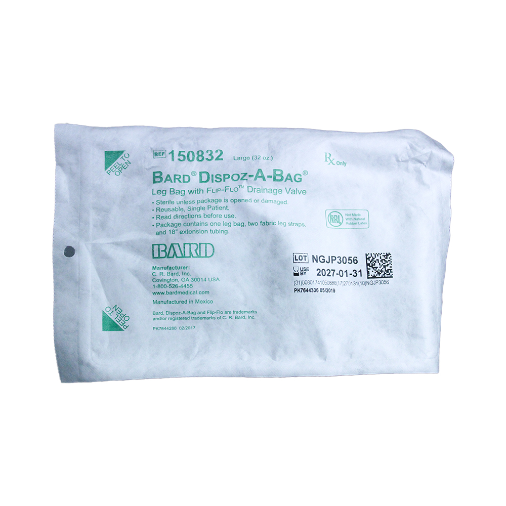 Dispoz-A-Bag is a sterile 1 Piece Drainable Leg Bag manufactured by Bard. The Bard Dispoz-A-Bag Leg Bag may be connected to the Urocare Male Urinal Sheath or the Bard Uro Sheath, and most other Urinary Appliances. Lightweight, odor-proof, heavy gauge material. Anti-reflux valve reduces risk of backflow, which reduces danger of infection. Bard Dispoz-a-Bag Leg Bags are made from heavy duty vinyl for extended wear, odor containment and leak resistance. Each Bard Leg Bag contains an anti-reflux valve. Available with or without the Flip-Flo drainage valve which opens and closes with a simple flip. The Bard Dispoz-A-Bag Leg Bag is reusable and sterile.