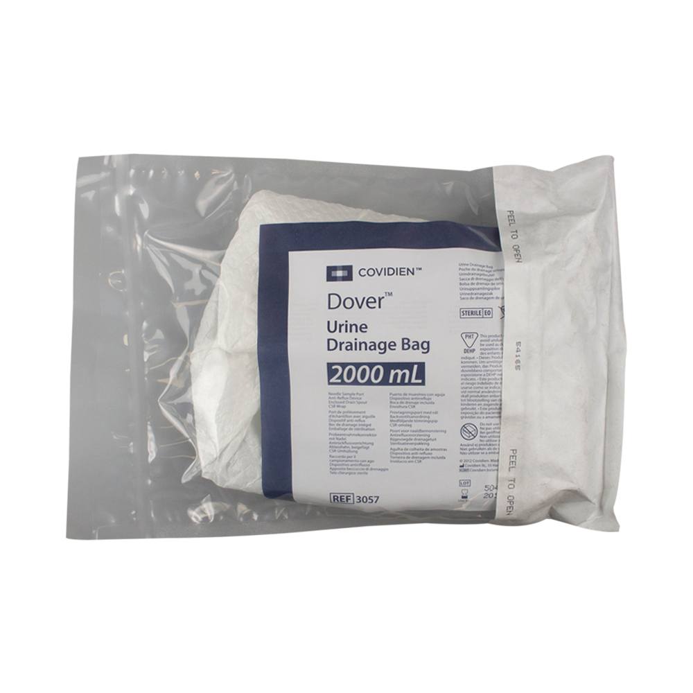 Dover™ urine drainage bags offer high-volume collection, eliminating the need for multiple changes. Each bag: