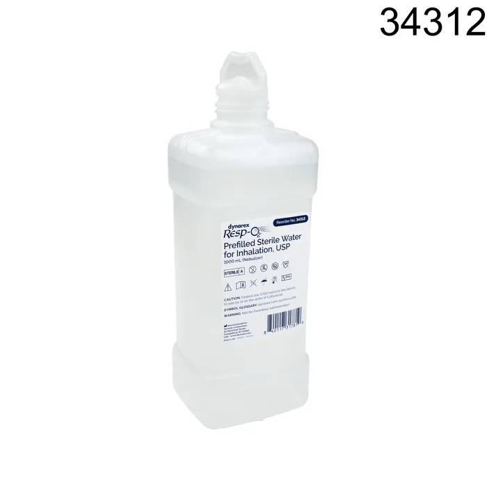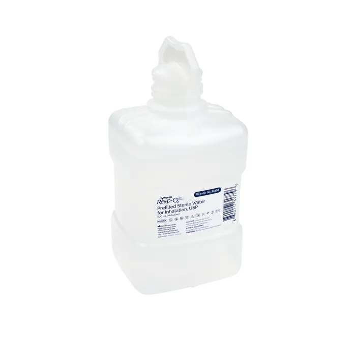 Dynarex Resp-O2 Prefilled Sterile Water for Inhalation Bottles are disposable, single-use respiratory therapy bottles filled with water designed for patient inhalation. The water is sterilized to ensure patient safety and to help avoid cross-contamination.