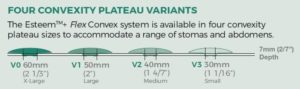 The Esteem™+ Flex Convex system is available in 4 plateau sizes (V0, V1, V2, V3) to accommodate a range of stomas and abdomens. (Size V0 – drainable pouches only).