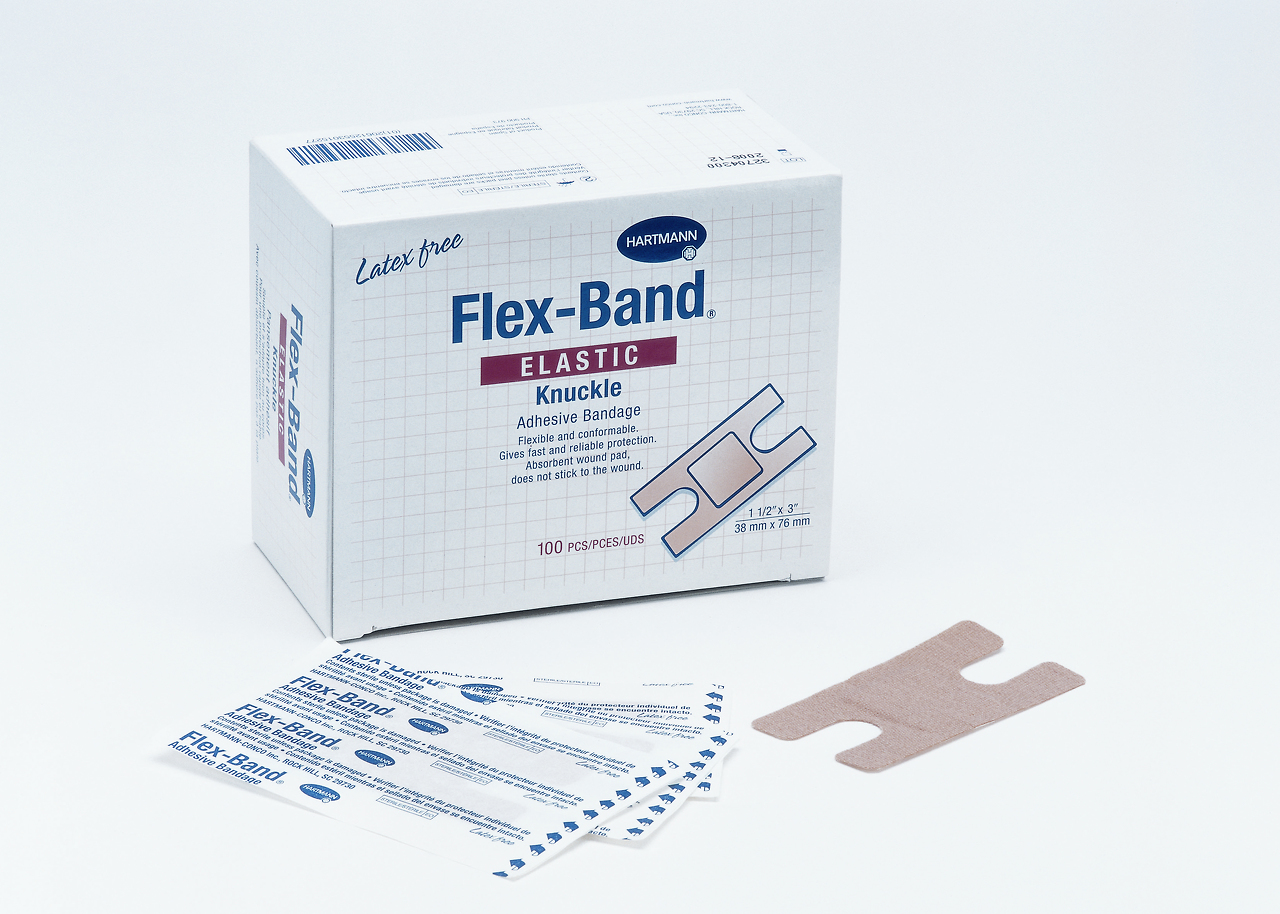 Flex-Band Latex-free, fabric adhesive bandage for comfort, protection and value. Flex-Band is made with a hypoallergenic adhesive and offers strong, flexible fabric for maximum conformability and durability. The full adhesive coverage around the island wound pad secures the bandage and provides a protective seal. Flex-Band firmly adheres to the skin, yet may be removed without leaving a sticky residue. Available in 10 shapes and sizes, Flex-Band offers patients the best choice for their individual needs.