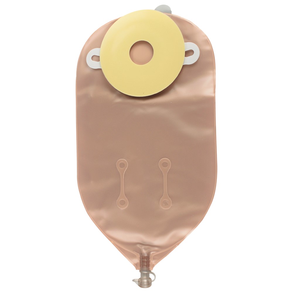 Nu-Hope Laboratories One-piece Hi-pockets Post-op Pre-cut Adult Urinary Pouch 1″ Opening Round. Opaque Front, Clear Back, with Cap and Adapter. The completely opaque white front conceals both the urine and stoma. The backside is clear, helpful when applying the pouch and checking for proper fit of the stoma.Two center seams better maintain pouch shape and flatness.Convenient and ready to use.