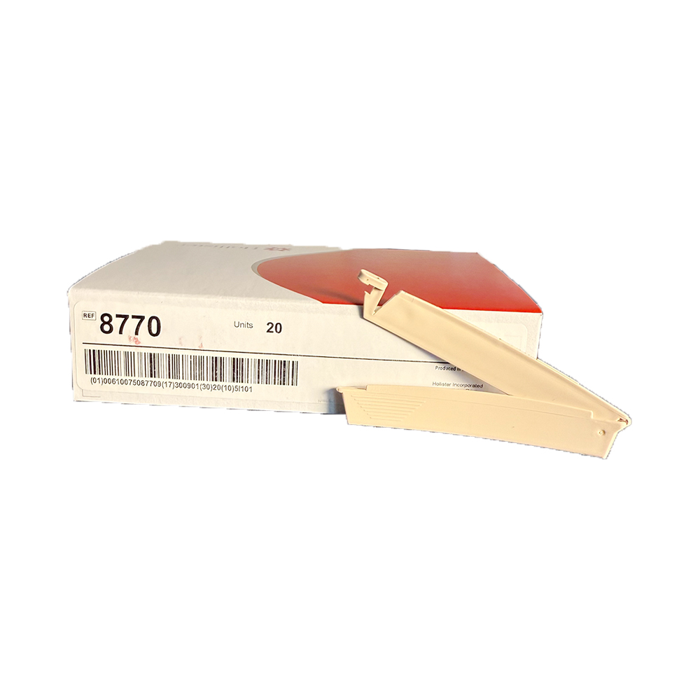 Certain ostomy pouches have an open end, requiring a pouch clamp to keep it securely closed. For systems without an integrated closure or other locking mechanism, the Hollister Drainable Ostomy Pouch Clamp fulfills this purpose, creating a secure seal. A plastic molded design with a hinged closure offers a greater degree of security and ease of use.