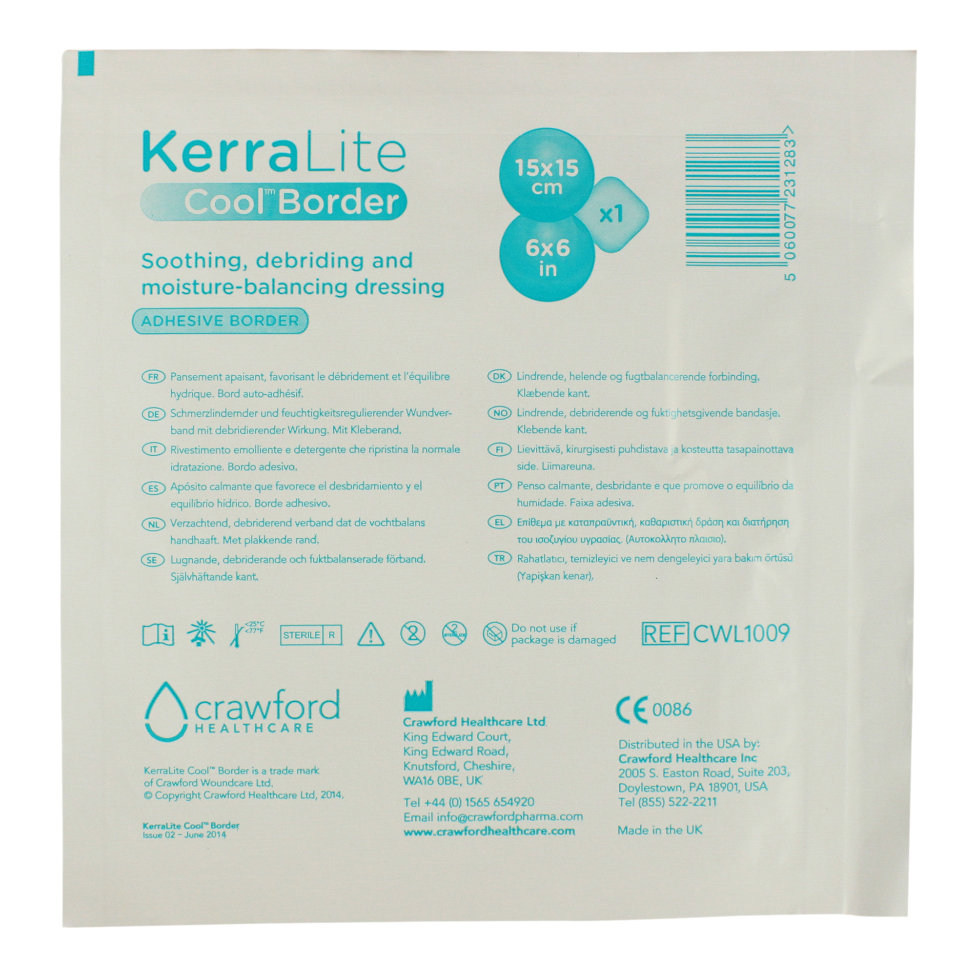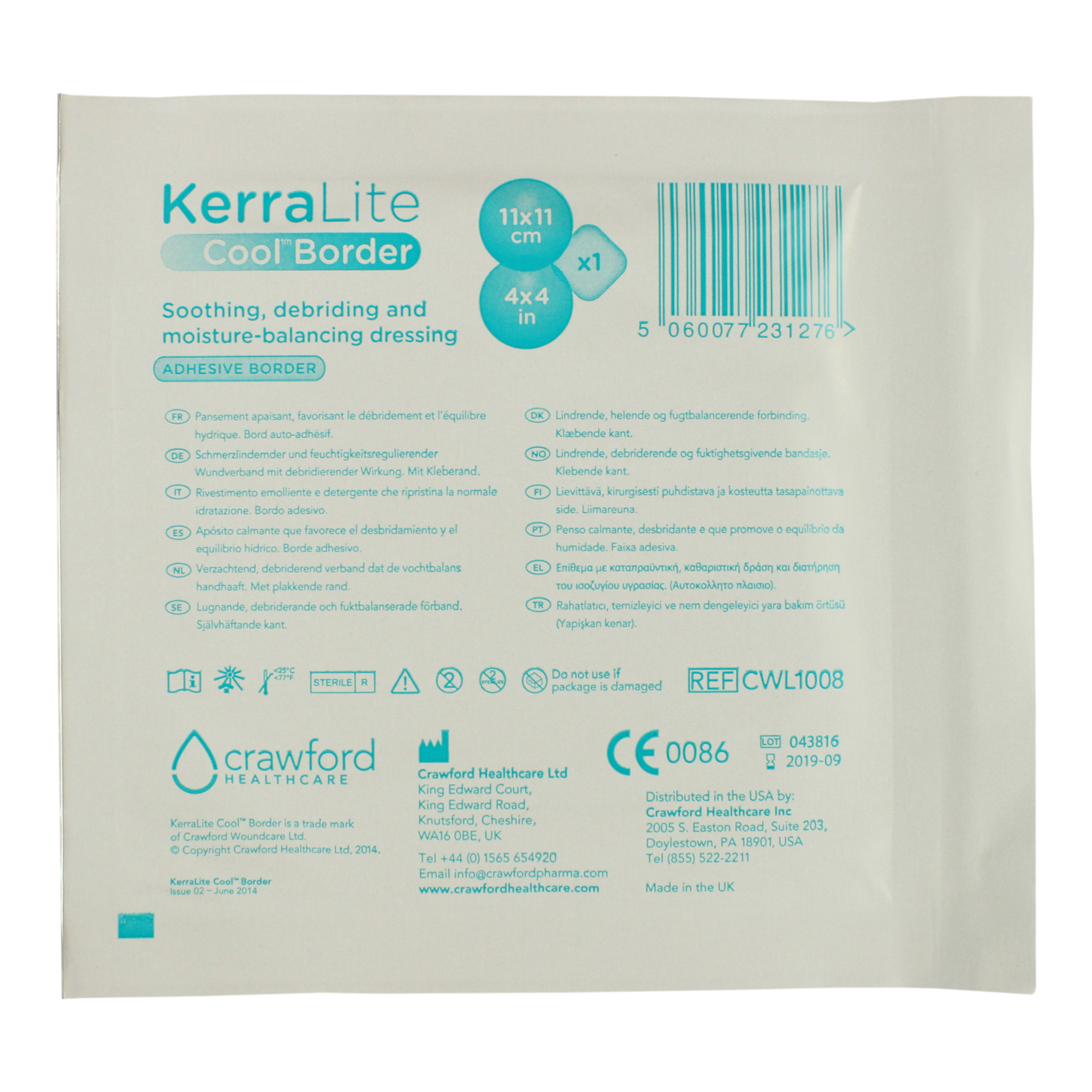 KerraLite Cool™ is a dressing using a transparent hydrogel that creates an ideal healing environment for dry or low-exudate wounds and helps debride tissue by donating or absoring fluid as required to encourage wound bed preparation and granulation. As its key ingredient, hydrogel helps maintain the right amount of moisture, absorbing water while providing a degree of permeability. KerraLite Cool™ offers a cool, soothing sensation created through a combination of fluid-repellent, flexible and breathable polyurethane film and pro-ionic gel contact layer.