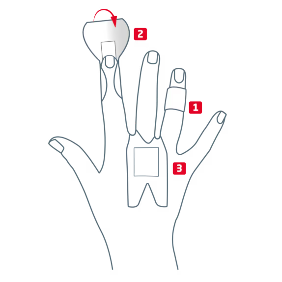 Available in a range of sizes and shapes to suit different areas of the body; and include finger strips which are specially shaped for dressing fingers.