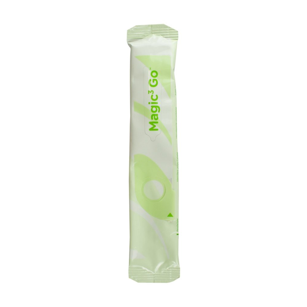The MAGIC 3 GO catheter is a hydrophilic, female length catheter with a robust handle for better control, a discreet consumer package, and a new coating that maintains the catheter in a hydrated state so that it is ready to go, straight out of the package.