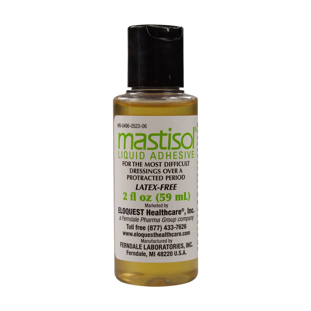 Mastisol is a liquid adhesive solution designed for various skin applications, including holding dressings, tapes and other medical devices in place and helping close certain wounds.
