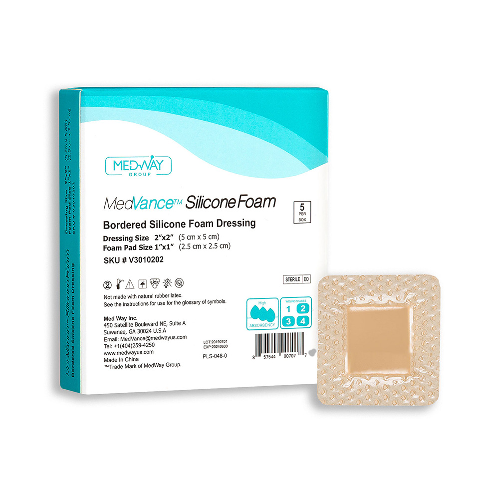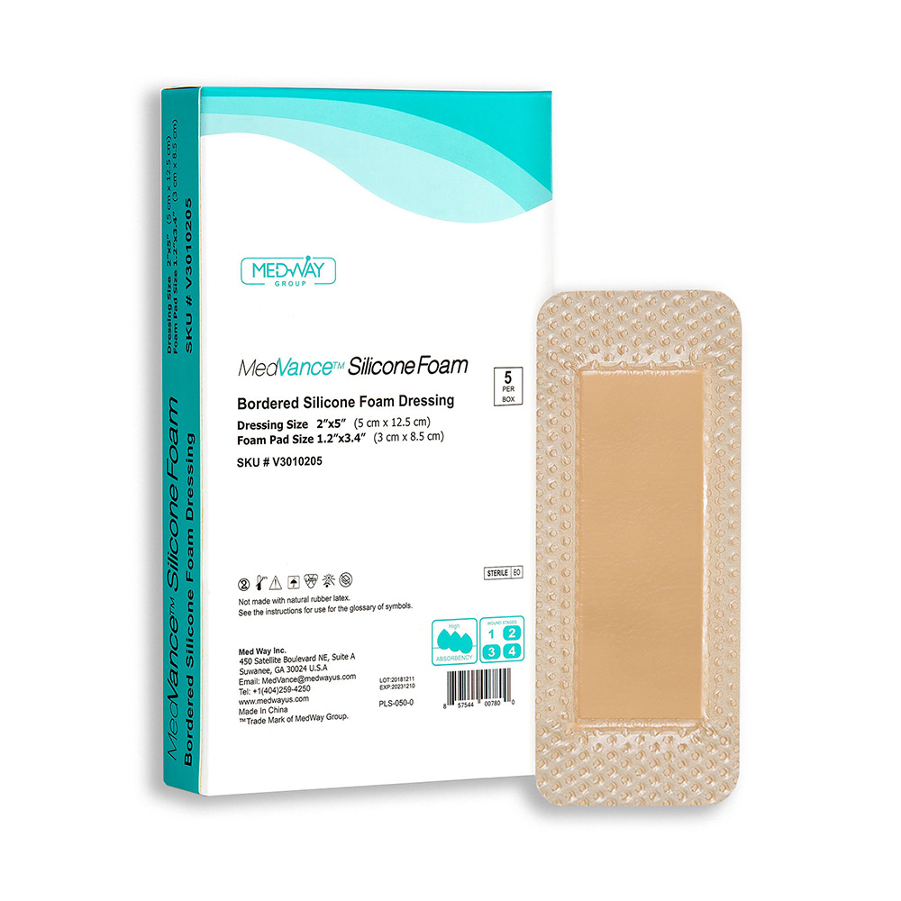 MedVance Silicone Foam Dressings are highly absorbent, self-adherent foam dressings consisting of polyurethane (PU) foam coated with a soft, hypoallergenic silicone adhesive and breathable polyurethane film.