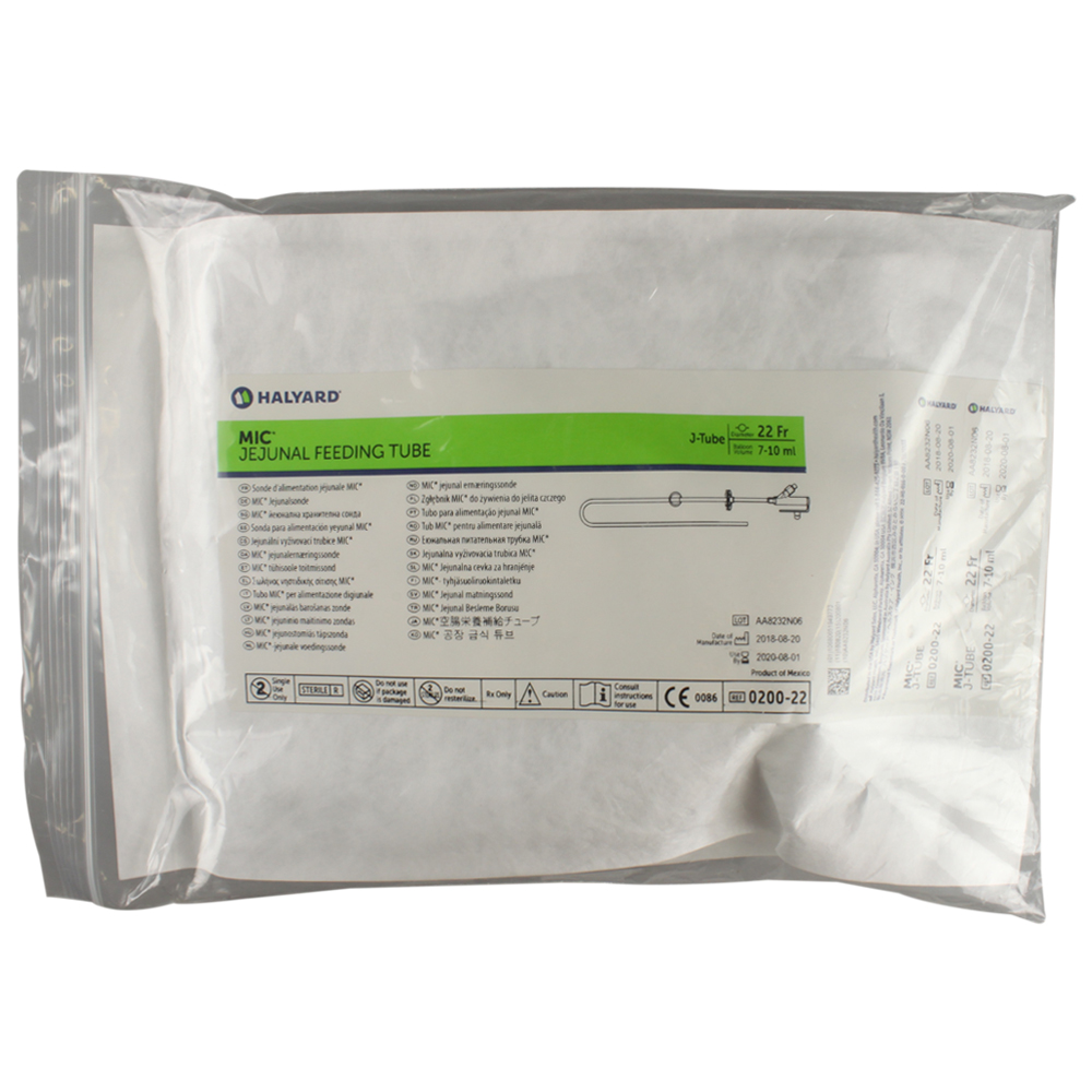 The MIC* J Feeding Tube is indicated for patients requiring jejunal feeding only. The distal tip can be trimmed to suit individual patient needs. The 12FR Tube is 2-3mL balloon size, all others are 7-10mL.