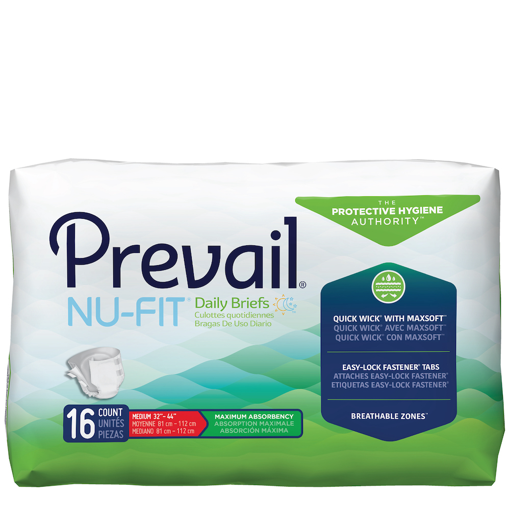 Prevail Nu Fit Briefs, manufactured by First Quality, are adult briefs that attach and reattach as many times as needed. The soft cloth exterior is designed for improved comfort and wearability. This exceptional softness is ideal for reducing skin irritation caused by harsh materials. Prevail Nu-Fit Briefs features a containment zone for fecal matter. These Adult Briefs can be refastened several times without becoming sticky.