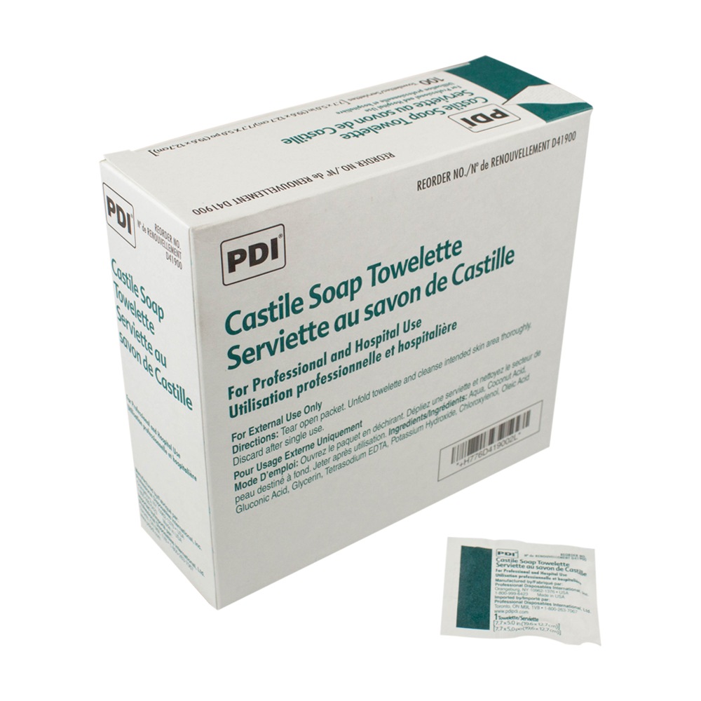 PDI Healthcare Castille Soap Towelettes are ideal for midstream clean-catch urine specimen procedures, and offer a gentle cleansing agent which is ph balanced. Castille Soap Towelettes contain 2% Coconut oil-based soap solution.