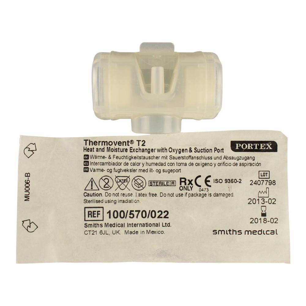 Sterile, single use heat and moisture exchanger. Provides effective humidification for spontaneously breathing patients whose upper airways are bypassed by a tracheostomy tube. Device can be used for a maximum period of 24 hours. Now there is a new oxygen accessory line available. The Thermovent T2 Oxygen Line is a specific designated oxygen tube for use with the Portex_ Thermovent T2.