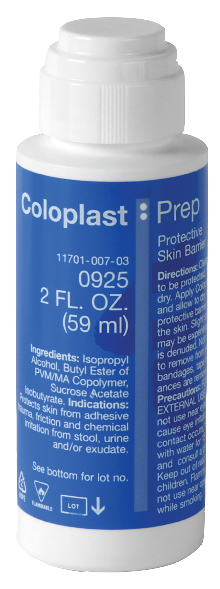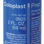 Coloplast Prep Protective Skin Barrier is a topical application that creates a fortress which protects skin. Fast-drying Coloplast Prep Protective Skin Barrier keeps skin comfortable and guards skin against moisture, including urine or stool irritation, by creating a nearly-invisible, non-cracking and non-peeling shield that dries clear. Active ingredients in Coloplast Prep Protective Skin Barrier are Isopropyl Alcohol, Butyl Ester of PVM/MA Copolymer, and Sucrose Acetate Isobutyrate.