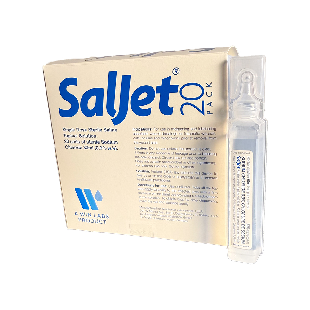 Saljet® is simply a better alternative to delivering small volume topical sterile saline. It’s faster, sterlie, and more economical than the standard practice of drawing multiple applications from a large container of saline using syringes and needles.