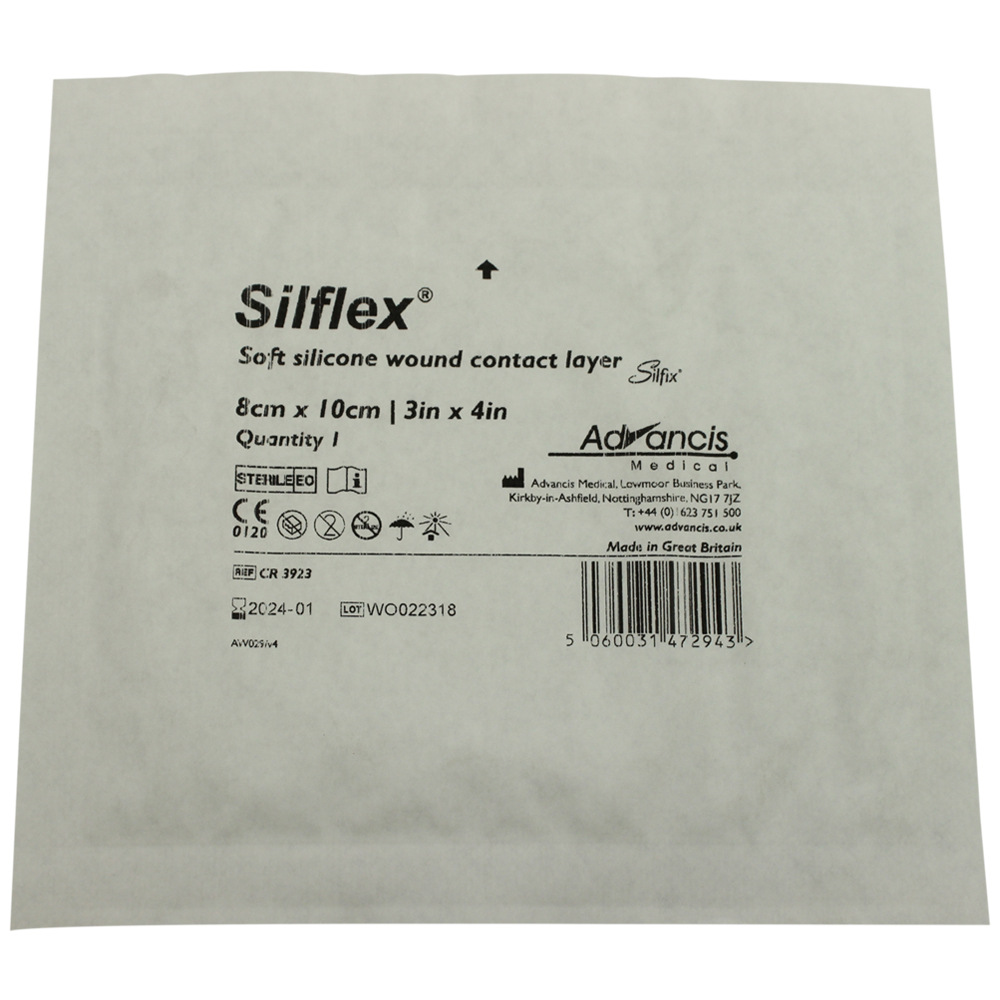 Silflex is a wound contact layer, made from polyester mesh coated with Silfix soft silicone. The hydrophilic silicone gently sticks to dry skin around the wound bed, preventing traumatic dressing removal.