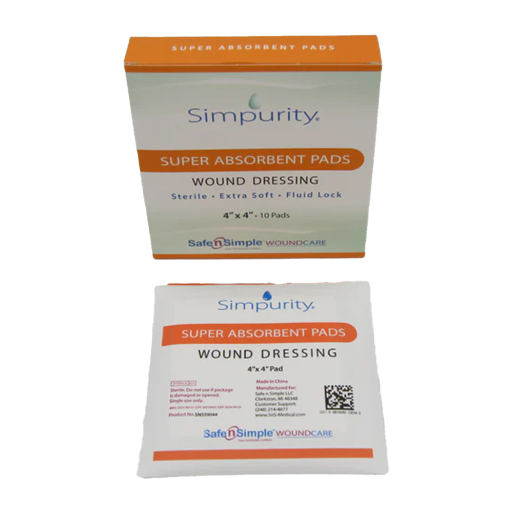Simpurity Super Absorbent Pads are made of a non-woven super absorbent fiber that will absorb up to 20x its weight of fluid. One layer of Super Absorbent Pad is equal to 36 layers of medical gauze. The pads will maintain a moist wound environment by allowing for breathability of moisture and oxygen for wound healing.