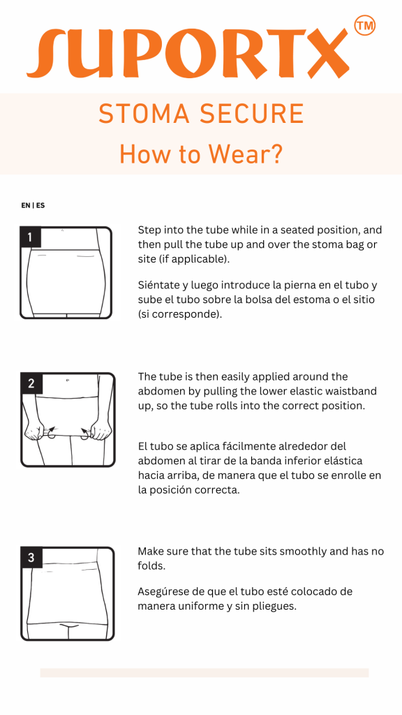Suportx™ Stoma Secure helps by providing ostomates, a snug fit of the stoma pouch against the skin, serving as an