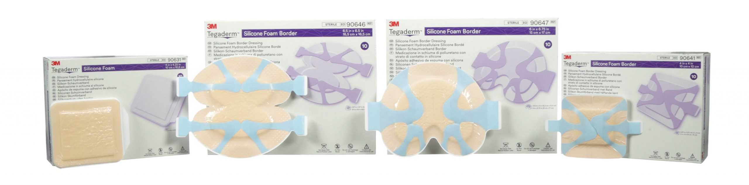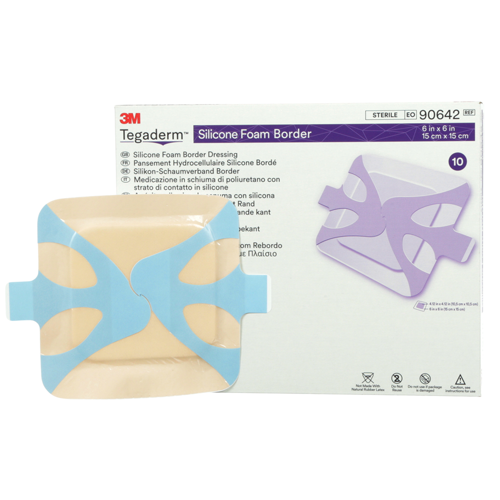 Tegaderm Silicone Form with Border is an innovative foam dressing from Solventum (Formerly 3M) with a special mutli-layer design that absorbs and evaporates mositure while allowing exudate to pass through to maintain an optimal wound healing environment. A strong and gentle silicone adhesive keeps the dressing in place with minimal disruption to the skin during removal.